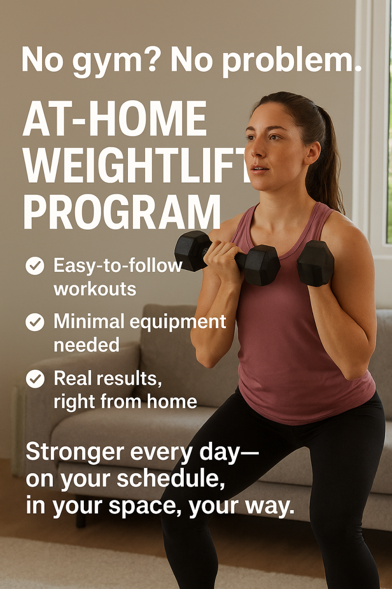 We’ll guide you through easy-to-follow workouts designed to fit your lifestyle, keep you motivated, and help you see real results. Whether you’re just starting out or looking to take your training to the next level, this program makes lifting at home simple, effective, and empowering.